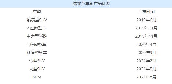 据绿驰汽车总裁助理兼品牌与营销管理中心总监丁哲介绍,绿驰汽车现有CC/M/S三个产品平台及车型组合,覆盖了微型、紧凑型及中大型,未来绿驰汽车将保持每6个月至少上市一款新产品的节奏,“根据规划,2019年6月投放首款紧凑级SUV产品,2019年11月投放首款4座微型车产品与中大型轿跑,2020年4月上市2座微型车,2020年9月上市紧凑级轿车,2021年2月上市小型SUV、5月上市大型SUV,2021年8月上市MPV”。